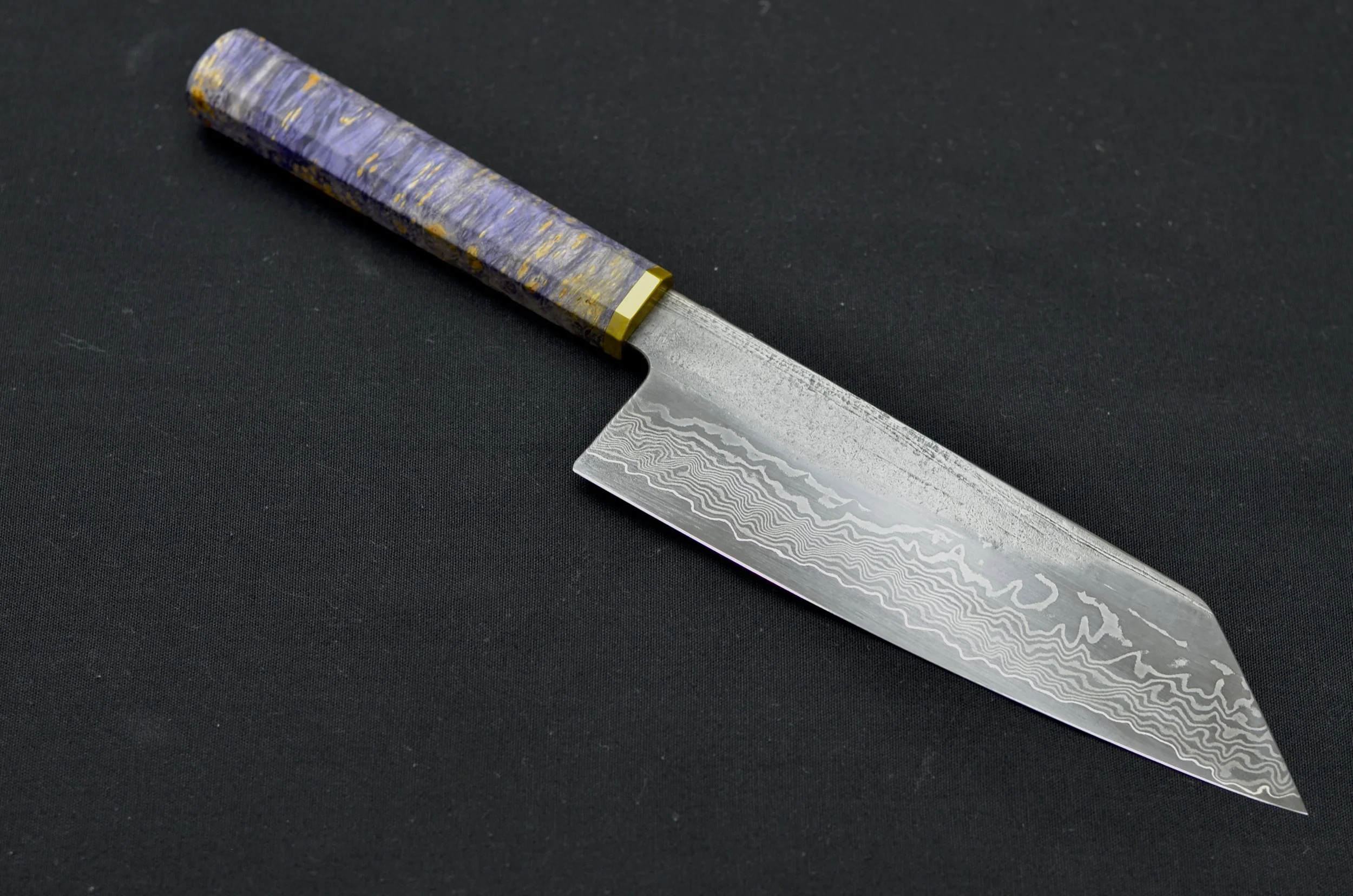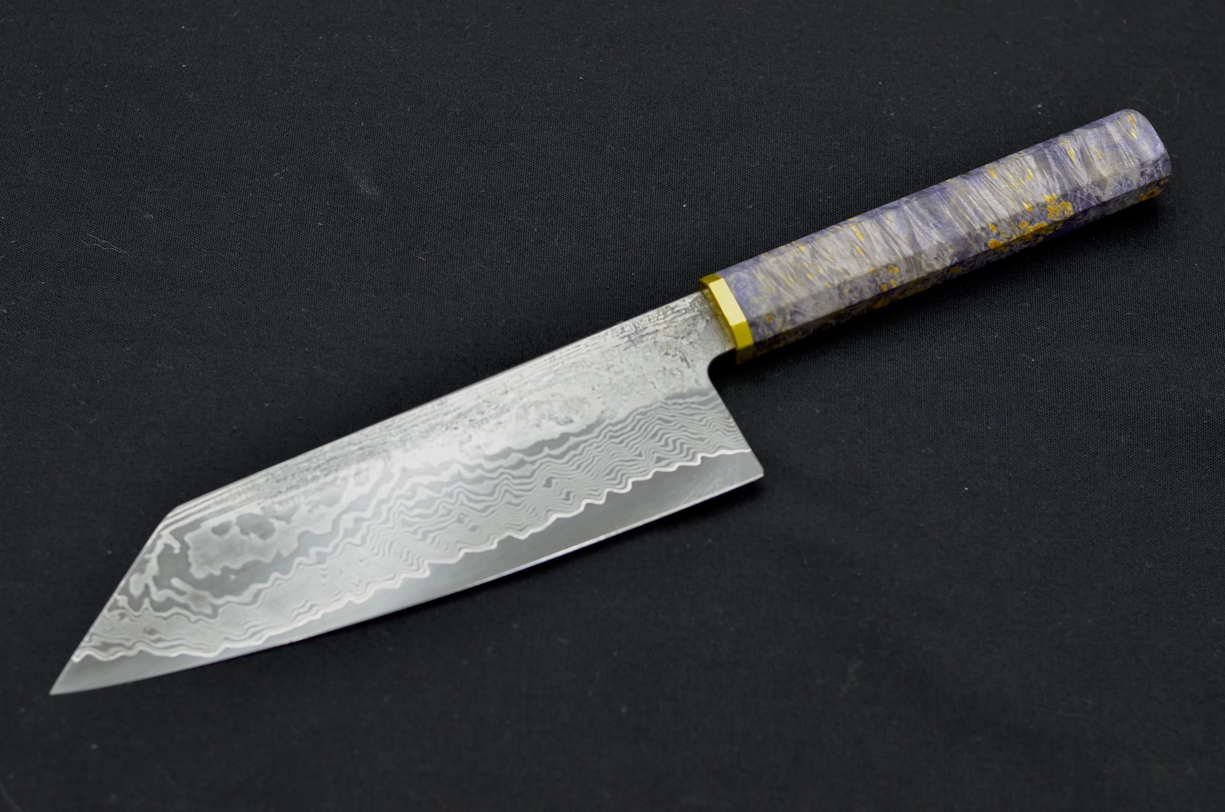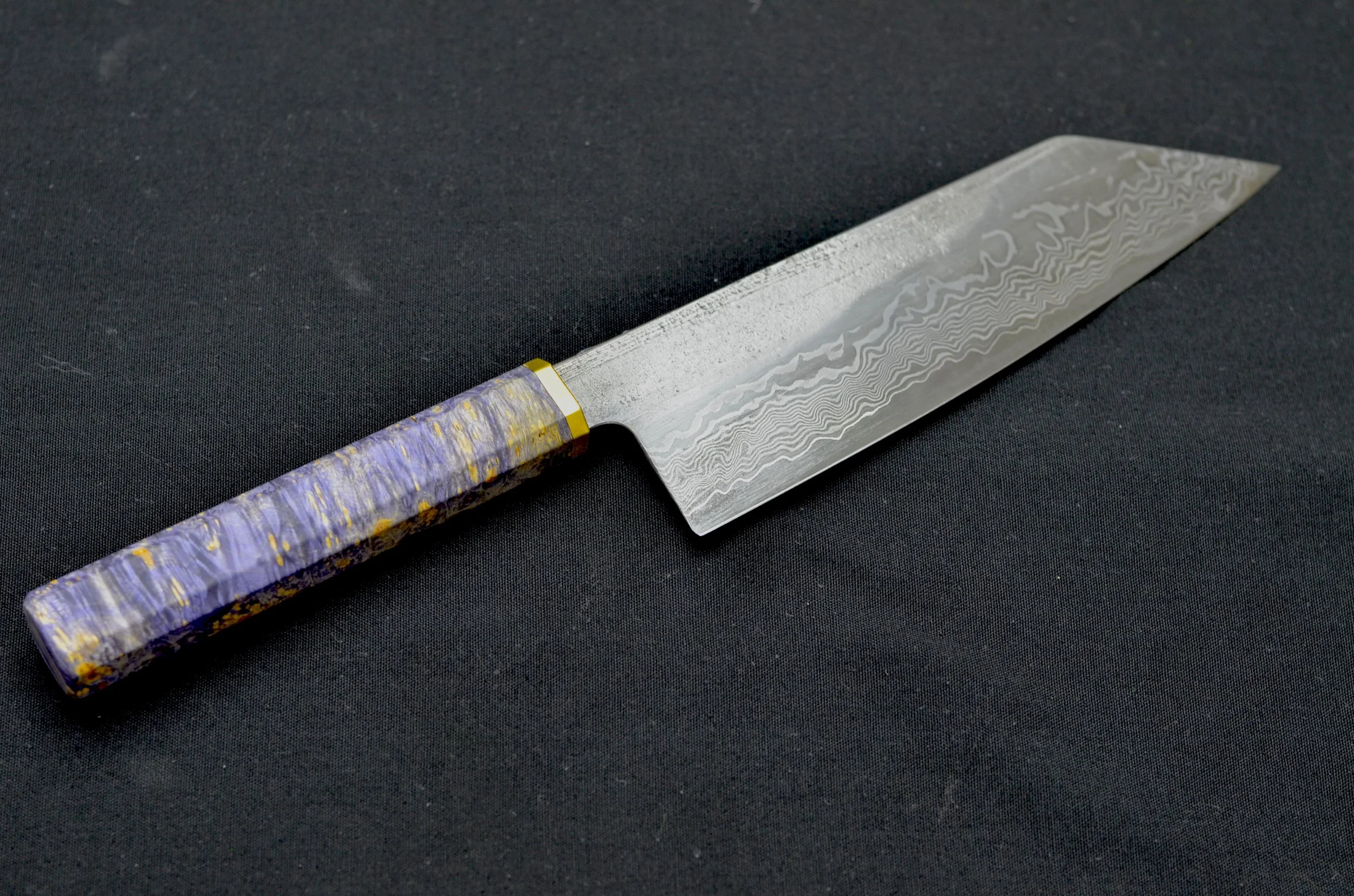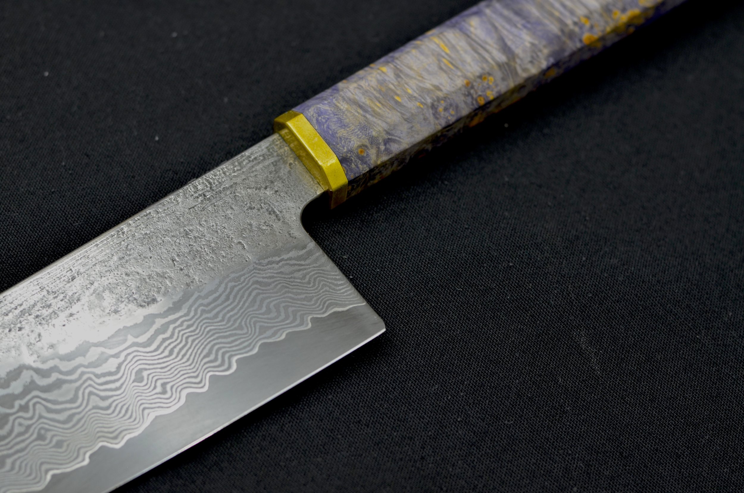 Steel - Apex Ultra San Mai damascus, nickel diffusion shims, 30 layer 80CrV2/15n20 cladding, core steel at 66 HRC with liquid nitrogen cryogenic treatment